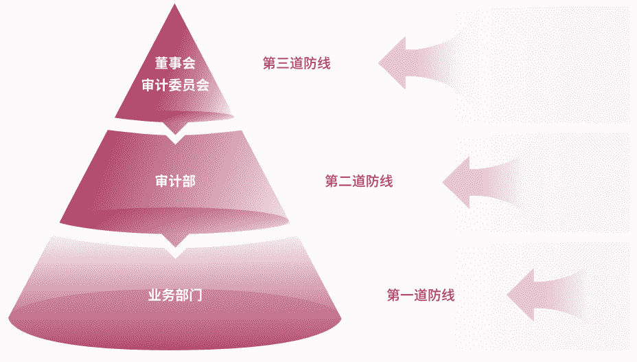 为有效防范贿赂与贪污等商业道德风险,,公司建立了由“董事会审计委员会、、、、审计部、、业务部门”组成的三道防线,,,全面落实公司商业道德合规工作,,,并确保《商业道德行为准则》的有效执行。。。。公司审计部在董事会审计委员会的指导下定期评估、、、、审查公司的合规运营情况及准则的履行情况,,,,并对公司及所有子公司开展商业道德行为审计。。公司保证商业道德行为准则审计工作每三年覆盖公司及其所有控股子公司的全部业务范围。。。