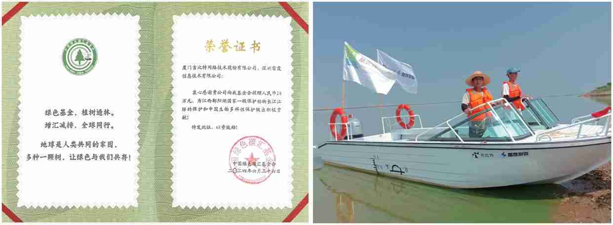 2024年6月,,,公司携手中国绿色碳汇基金会,,,开展“保卫江豚”公益活动,,向基金会捐赠人民币20万元用于采购全新巡逻艇,,,,以支持鄱阳湖长江江豚保护工作。。截至2024年底,,公司捐赠的资金与巡逻艇已经有效协助巡护队对鄱阳湖1,667头江豚开展保护行动。。