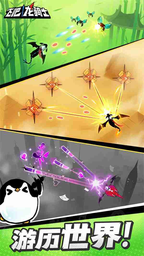 《飞吧龙骑士》是一款集合了飞行弹幕射击、、、Roguelike要素和挂机养成的休闲手游,,极具创意的吞食子弹反击玩法,,,,突破传统飞行射击的刻板限制,,,,带来了独特的爽快清屏体验。。。